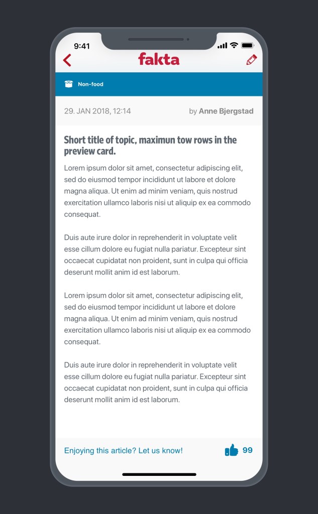 I have chosen a colour coded design, indicating what category the post be,ongs to. This way, the user can easily skimp through the articles that interest them and get to relevant informatin easier. For a purpose of aestetich and text – image correctation, I have also added custom made icons representing each theme or category.