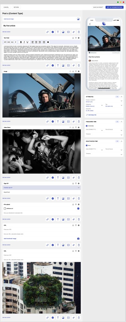 - ensure a unified and consisted flow for creating any type of content within the entire platform