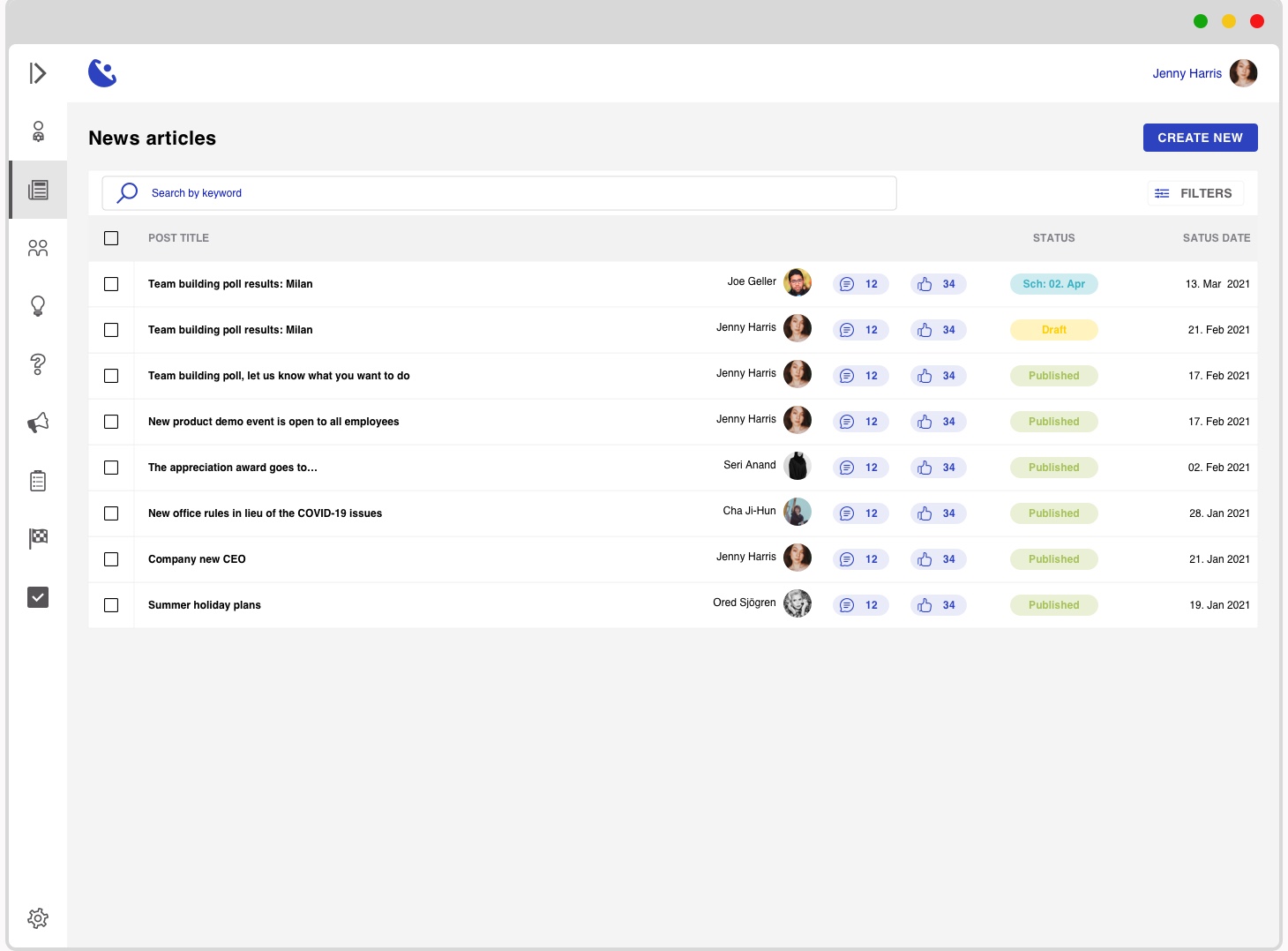 This redesign is done for one of the in-house products I have worked with. The Product features a mobile app focusing on employee engagement. As it evolved, it needs a web platform to facilitate managing of content and users by HQ departments.