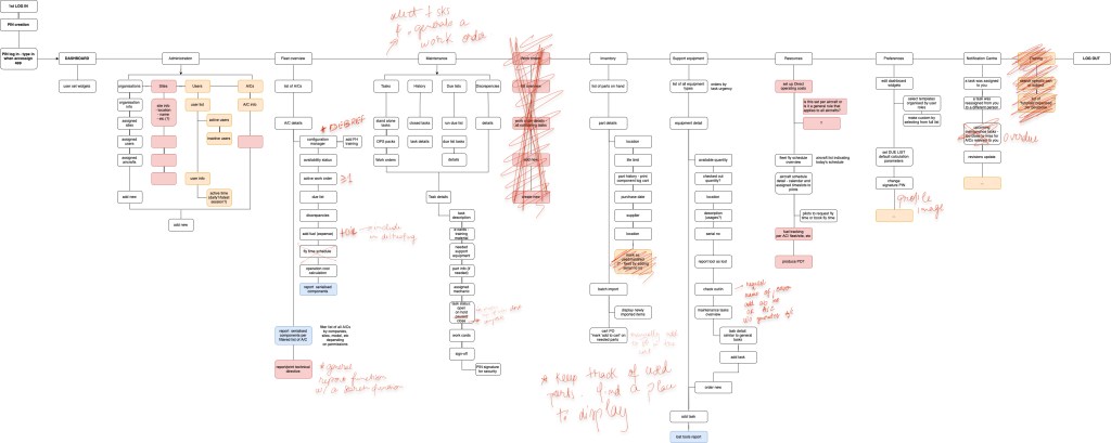 - conducted qualitative interviews: the stakeholders were experienced mechanics and pilots, therefore they could provide extensive insight into the user journey. I used the workshop as a informal interview site, where I could ask questions while defining functionality and interfaces and get their direct feedback
